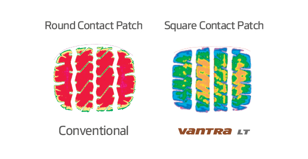 A larger squared profile and durable compound improve mileage by 12%. The durable compound offers a longer tread life with the optimal combination of cutting-edge fillers and flexible rubber materials.