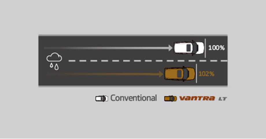 Vantra LT shows 2 to 9% reduction in braking distance compared to previous product.