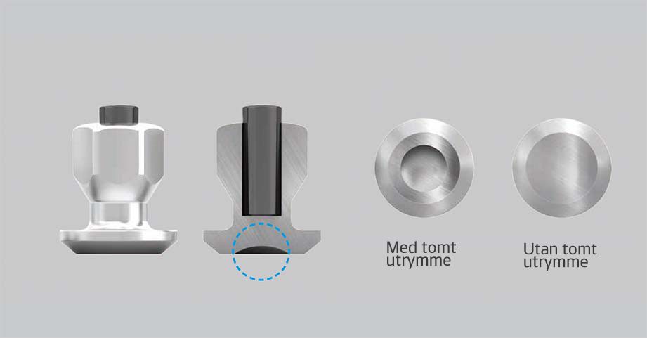 Under dubbens dubbstift har ett tomt utrymme skapats för att minska påverkan på vägen. Även prestandan förbättras genom det ökade antalet dubb.