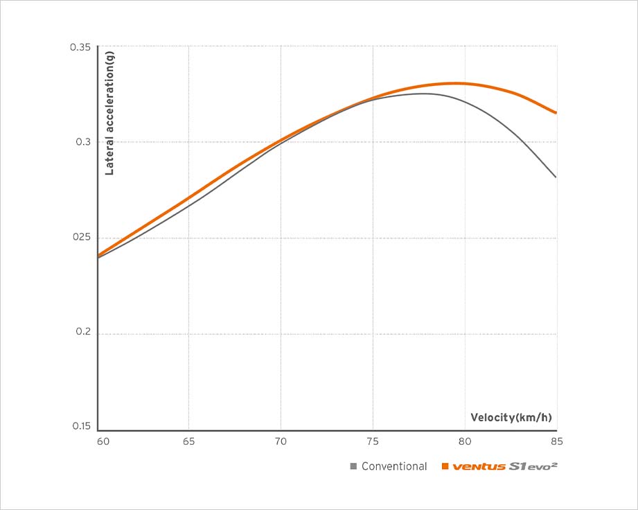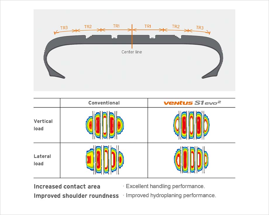 Optimized triple TR(Tread Radius) system based on racing profile technology ensures the best tire performance in high-speed driving condition.